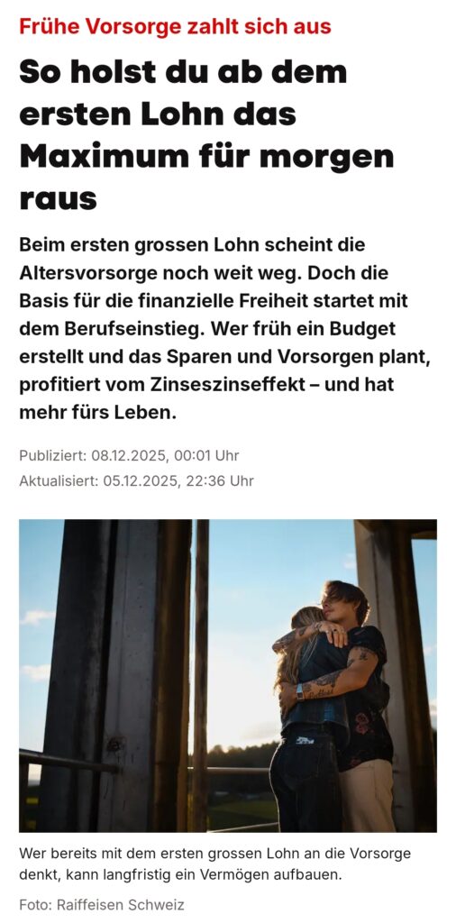 Für einmal überrascht mich ein Artikel im Blick ! Vermutlich, weil er im Auftrag der Raiffeisen verfasst wurde;-). Das steht zumindest am Ende des Beitrags.